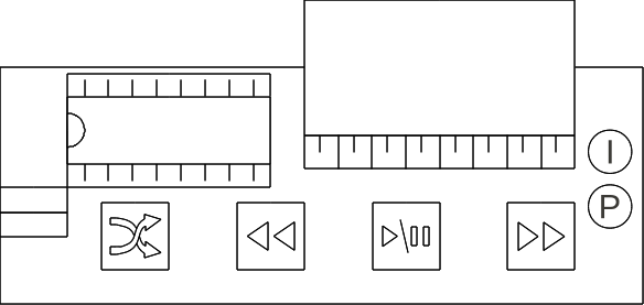 (I) indicator LED on if playing, flashing if playing+shuffle